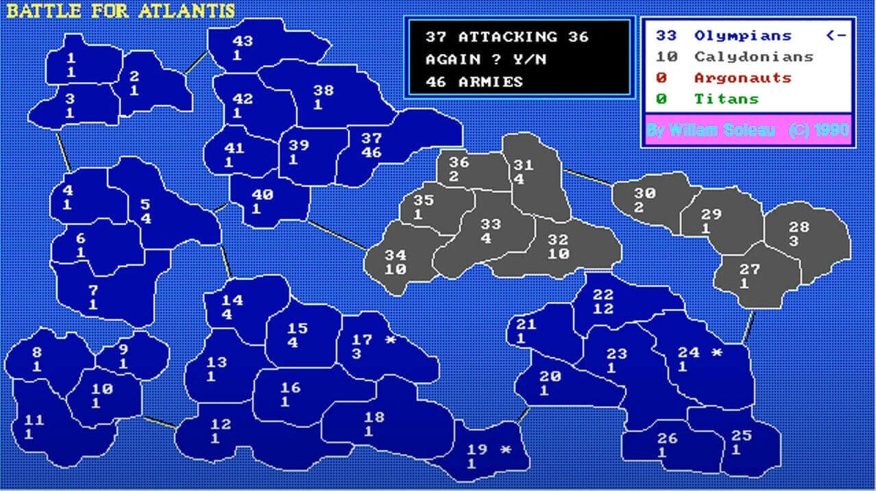 Developed by Soleau Software back in the early 90s’, Battle for Atlantis is an enthralling war-strategy game in which you’ll be fighting with numerous other armies to decide who rules the world by taking over the maximum number of islands and cities so gear up as this exciting game is certain to test your strategic abilities to the limit. You’ll start the game with various cities under your control and each one of those cities will have their own army to help you fight and protect. The main objective of the game is to occupy as many islands and cities as you can so whoever occupies the most number of islands and cities emerges victorious but that won’t be an easy task as you’ll have to plan every move and turn quite smartly.
